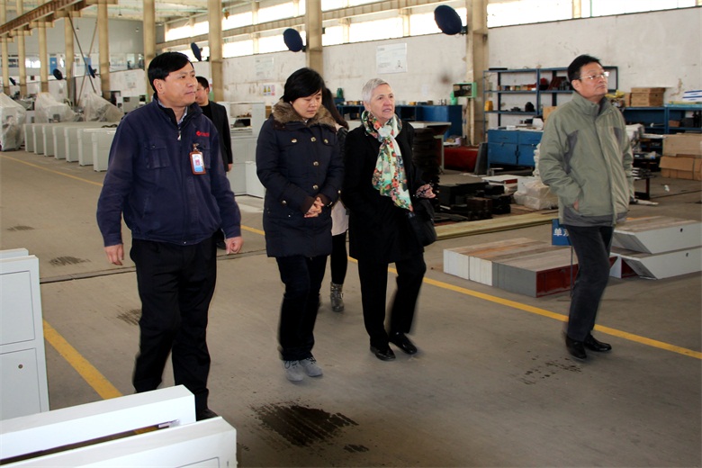 在參觀鋁機(jī)總裝車間時(shí),Bernice Herris副校長(zhǎng)對(duì)我公司目前處于國(guó)內(nèi)領(lǐng)先水平的鋁機(jī)產(chǎn)品表示了充分肯定,并對(duì)其研發(fā)、工藝流程進(jìn)行了詳細(xì)詢問(wèn),公司生產(chǎn)副總亓愛(ài)林對(duì)考察團(tuán)提出的問(wèn)題一一作了解答。