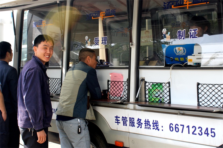 10月15日上午9點(diǎn)30分,服務(wù)車開進(jìn)濟(jì)南天辰鋁機(jī)股份有限公司,現(xiàn)場為企業(yè)員工辦理駕駛證、行駛證和機(jī)動車年檢業(yè)務(wù)。據(jù)統(tǒng)計,“流動車管所”共為企業(yè)150余名員工辦理了駕駛證年檢業(yè)務(wù),發(fā)放宣傳材料、解答咨詢100余次。