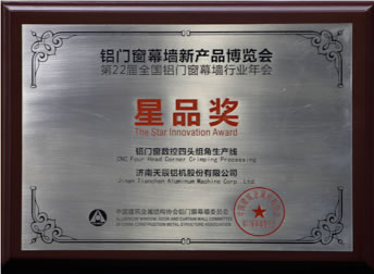 展會(huì)期間,在第二屆中國門窗幕墻年度星品評選中,天辰股份的數(shù)控四頭組角生產(chǎn)線以其填補(bǔ)國內(nèi)空白的先進(jìn)的技術(shù)及超高生產(chǎn)效率,獲得評審及專家的一致好評,勇奪“星品獎(jiǎng)”。天辰股份市場部傅旺經(jīng)理在星品發(fā)布會(huì)上對該設(shè)備進(jìn)行了詳盡的技術(shù)闡述。