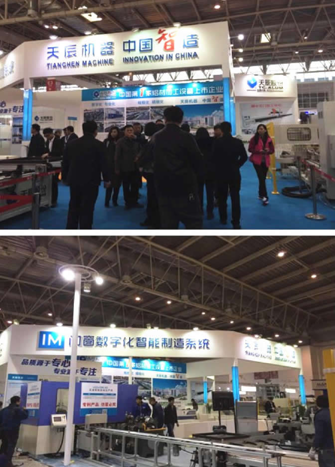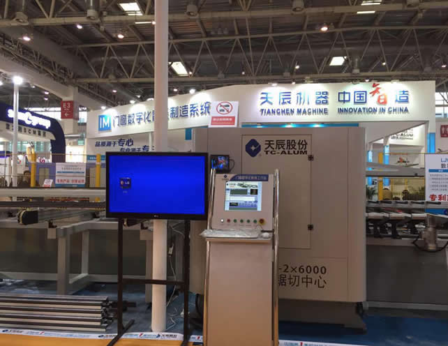 展會期間,天辰股份攜數(shù)控雙料鋸切中心、數(shù)控四頭組角生產(chǎn)線、數(shù)控仿型銑、高速四軸加工中心、五金鉸鏈自動生產(chǎn)線等高端設(shè)備強勢登陸國際展覽中心E4館 306展位。近四百平米的超大展位,天辰股份傾力打造“IM門窗數(shù)字化智能制造系統(tǒng)”,同時將手機APP與門窗加工設(shè)備進行現(xiàn)場數(shù)據(jù)互聯(lián),向廣大客戶展示門窗加工的智能制造系統(tǒng)。展會首天就得到了行業(yè)領(lǐng)導的肯定及廣大客商的好評,成為了本屆展覽會的一個亮點!