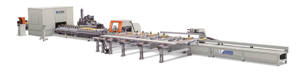 本生產(chǎn)線是一款用于對鋁合金模板C型板進(jìn)行數(shù)控送料切割、兩側(cè)面沖孔加工的高效鋁模板自動生產(chǎn)線。